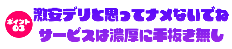 基本のサービスだけでもこってり濃厚な内容。普通のデリだとそこそこのお値段になるのではないでしょうか?